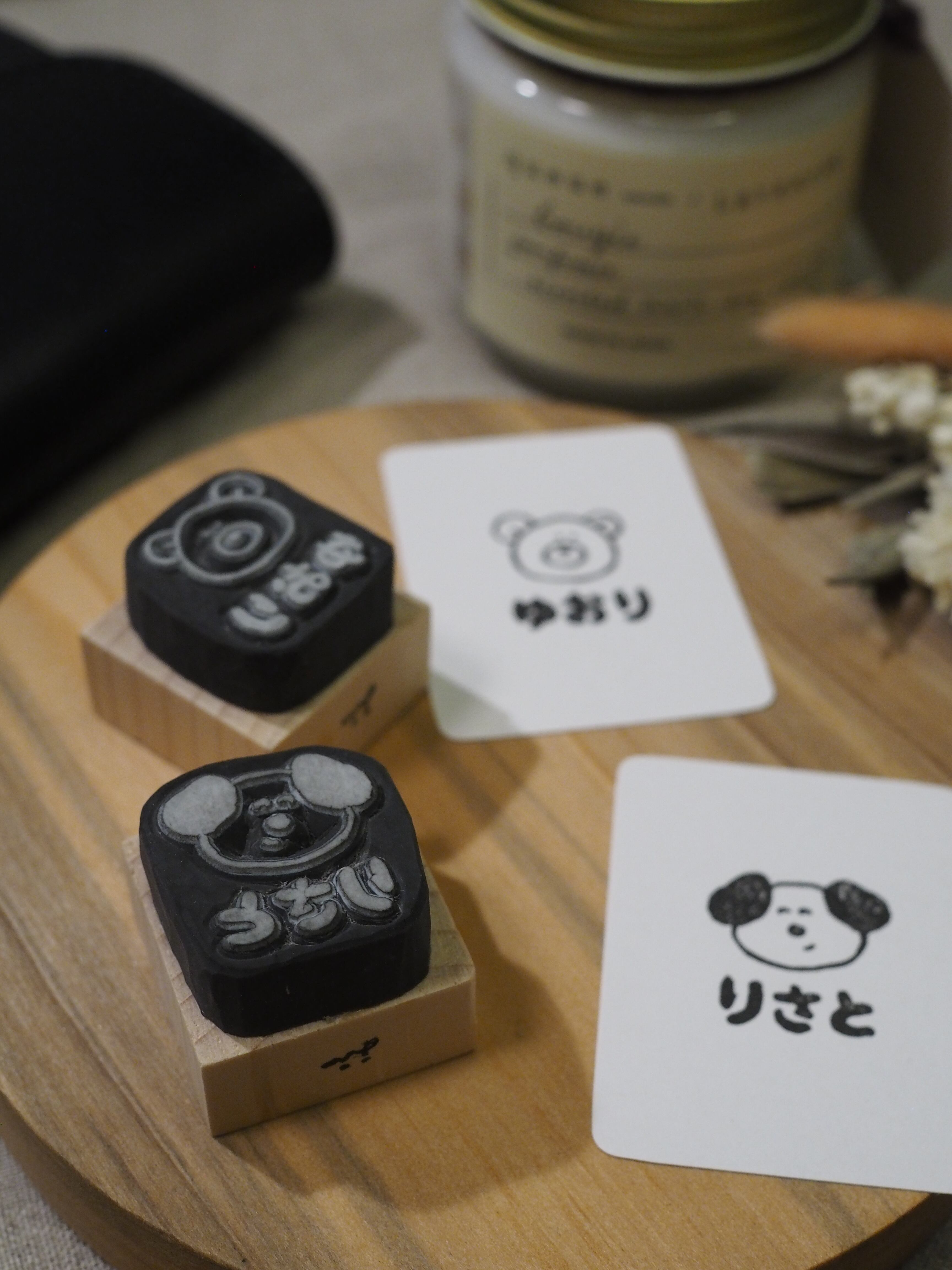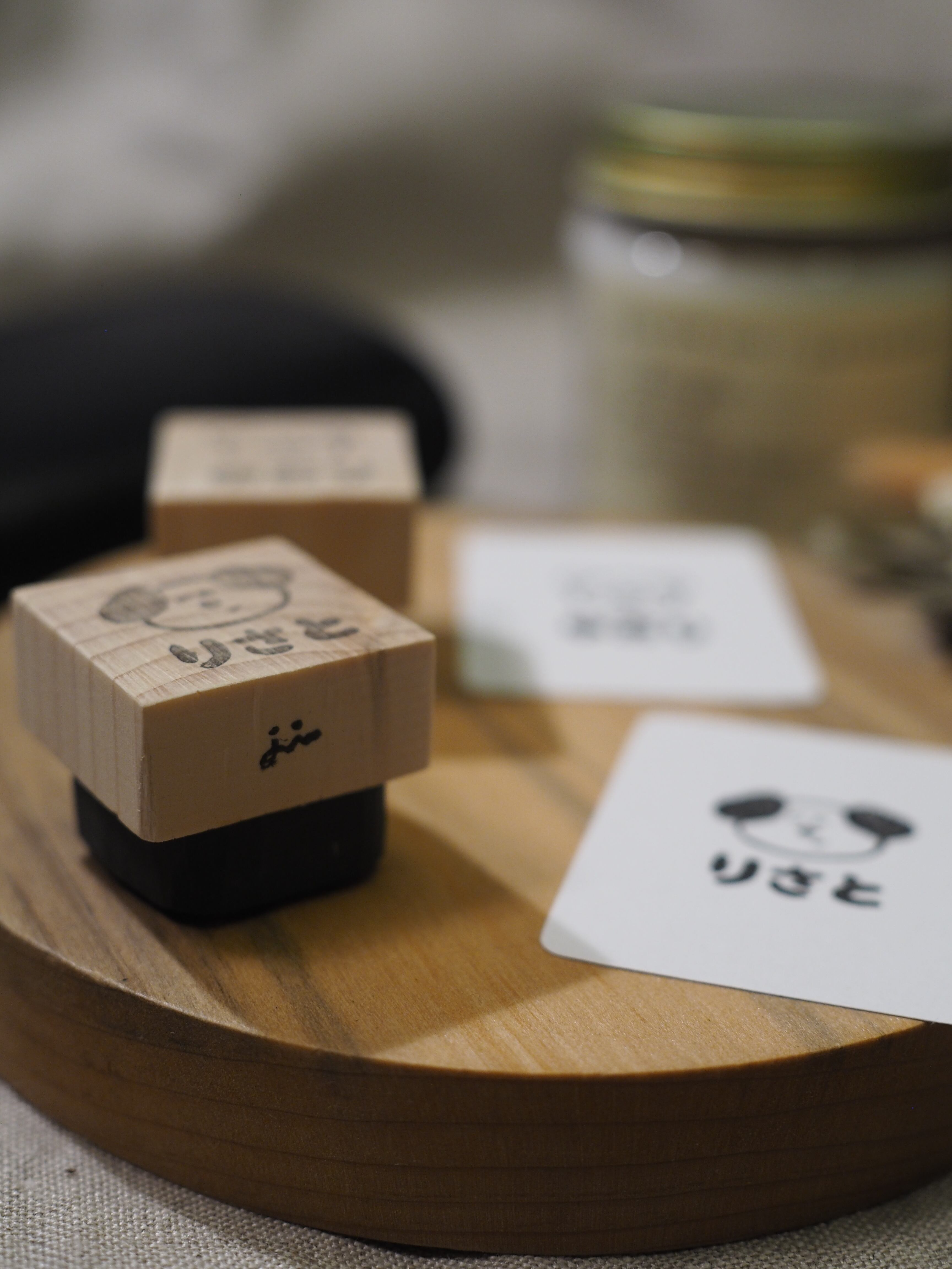 ・木の持ち手が付いた消しゴムはんこ